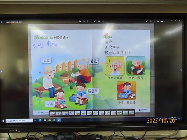 小朋友看阿公講古、阿媽種花的照片,分享看到什麼...
